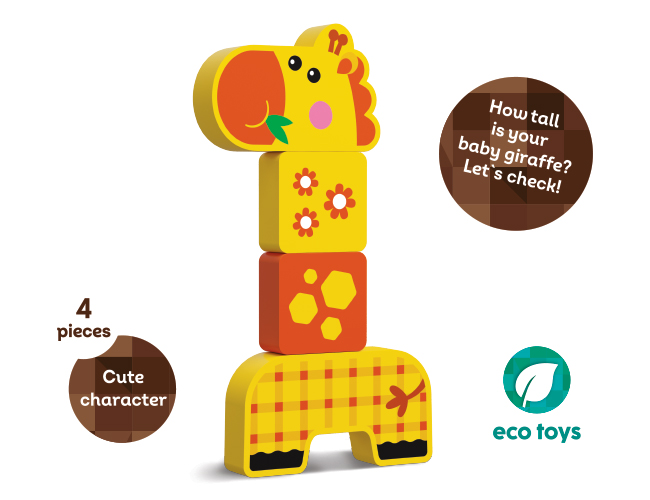 This wonderful set is a colourful eco-friendly toy! The wooden blocks are made of high-quality wood, BPA free and stained with bright non-toxic water-based paint. With the Friendly Giraffe children learn to match the elements, balance each piece and stack blocks atop one another. This well-designed toy stimulates toddlers’ imagination and is perfect for development of their hand-eye coordination and attention span. Let kids stack, build, discover!
