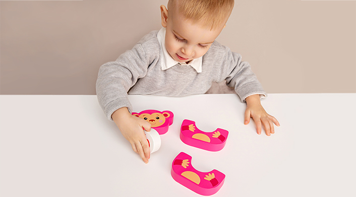 With this bright wooden toy kids will enjoy a build-and-match game and learn thinking outside the box! The Funny monkey is easy to build and is attractive to play with. The monkey can be “treated” to an apple or a banana using a reversible tummy element. This toy helps develop babies’ motor skills, teaches hand-eye coordination and the size concept. All this ensures a wonderful experience for the toddler exploring the world around!