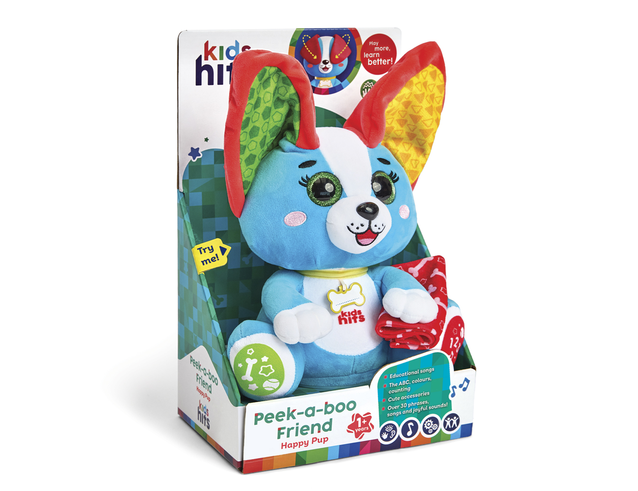 This cheerful Peek-a-boo Friend is an amazing toy that will become the baby’s best play and learning companion! The puppy is good at playing peek-a-boo! It can move its ears and cover the snout to hide and then show its charming smile again. Every child will be delighted to learn counting, colours and the alphabet, listening to entertaining songs of such a clever friend. The little one can think of a name for this cute playmate and write it on the pet tag on its collar. Make friends, play and learn with Happy Pup!