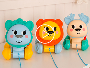 Playing with this bright push and pull Lion, kids get involved in an “open-ended” imaginative play! The toy can be pulled on a string and become a companion of the little ones exploring the space around. Due to the inertia wheels, Lion can pick up speed and take surprising routes. Moving the head on the go, the toy fascinates kids and invites them to crawl and walk, complete coordination tasks and learn directions!