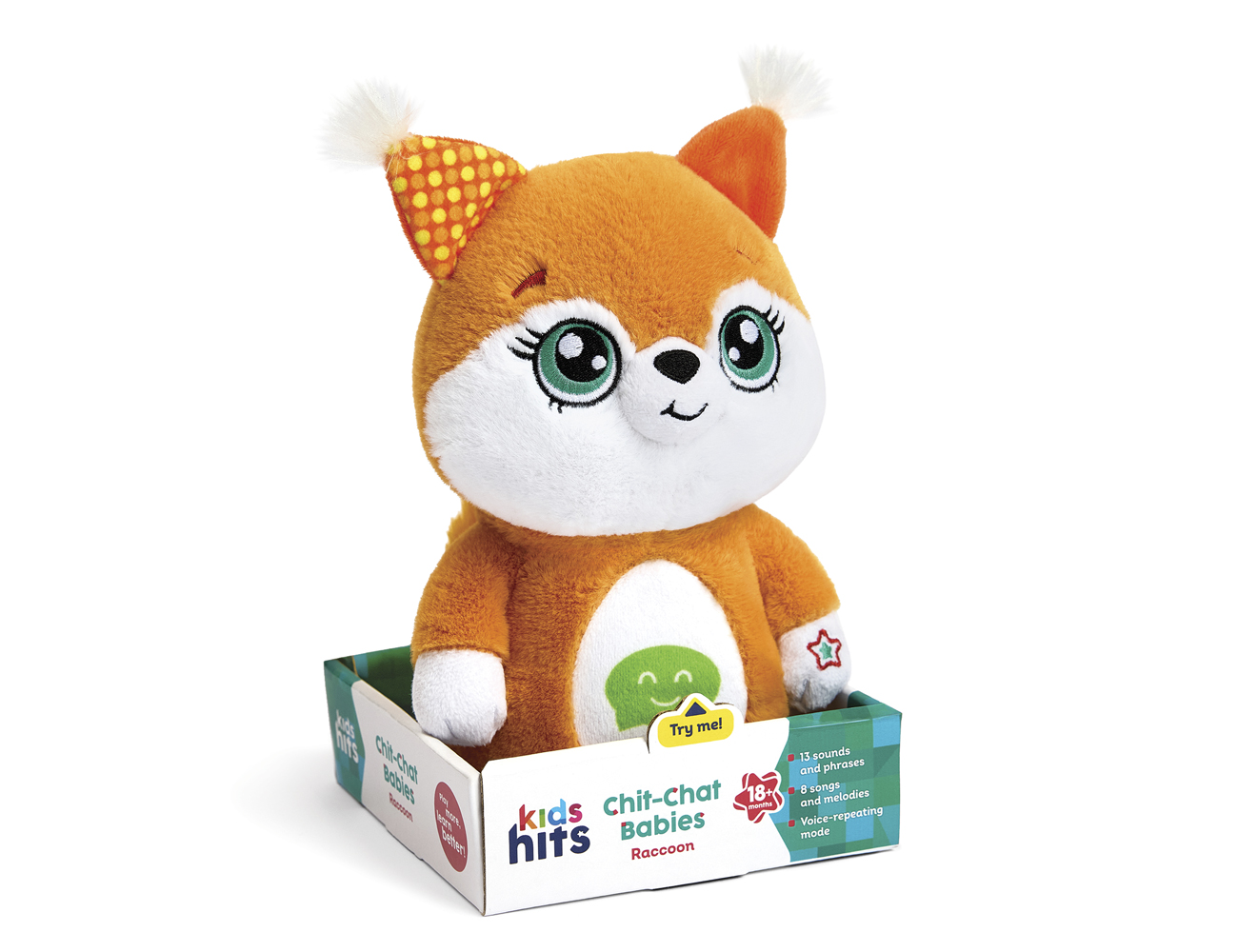Chit-Chat Chipmunk is a fantastic dancing and talking toy that can move to the beat of music and repeat words! Press the button on its belly - it will make every moment of play a joyful conversation! With its voice-repeating magic, the chipmunk encourages kids to speak, explore sounds, and express themselves. Say hello to the cheeky Chit-Chat Chipmunk!