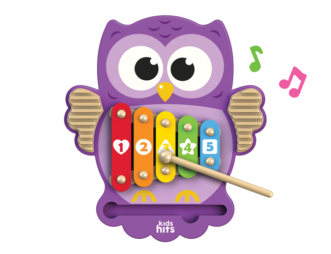 This owl xylophone is a wonderful creative learning tool that allows children to explore simple music concepts through play. With five rainbow-coloured keys, a rattle on the wings of the owl and a self-storing wooden mallet - this toy is designed to let kids obtain first knowledge during hands-on play, learning shapes, colours and counting from 1 to 5. Playing with this first musical instrument toddlers will develop a sense of accomplishment!